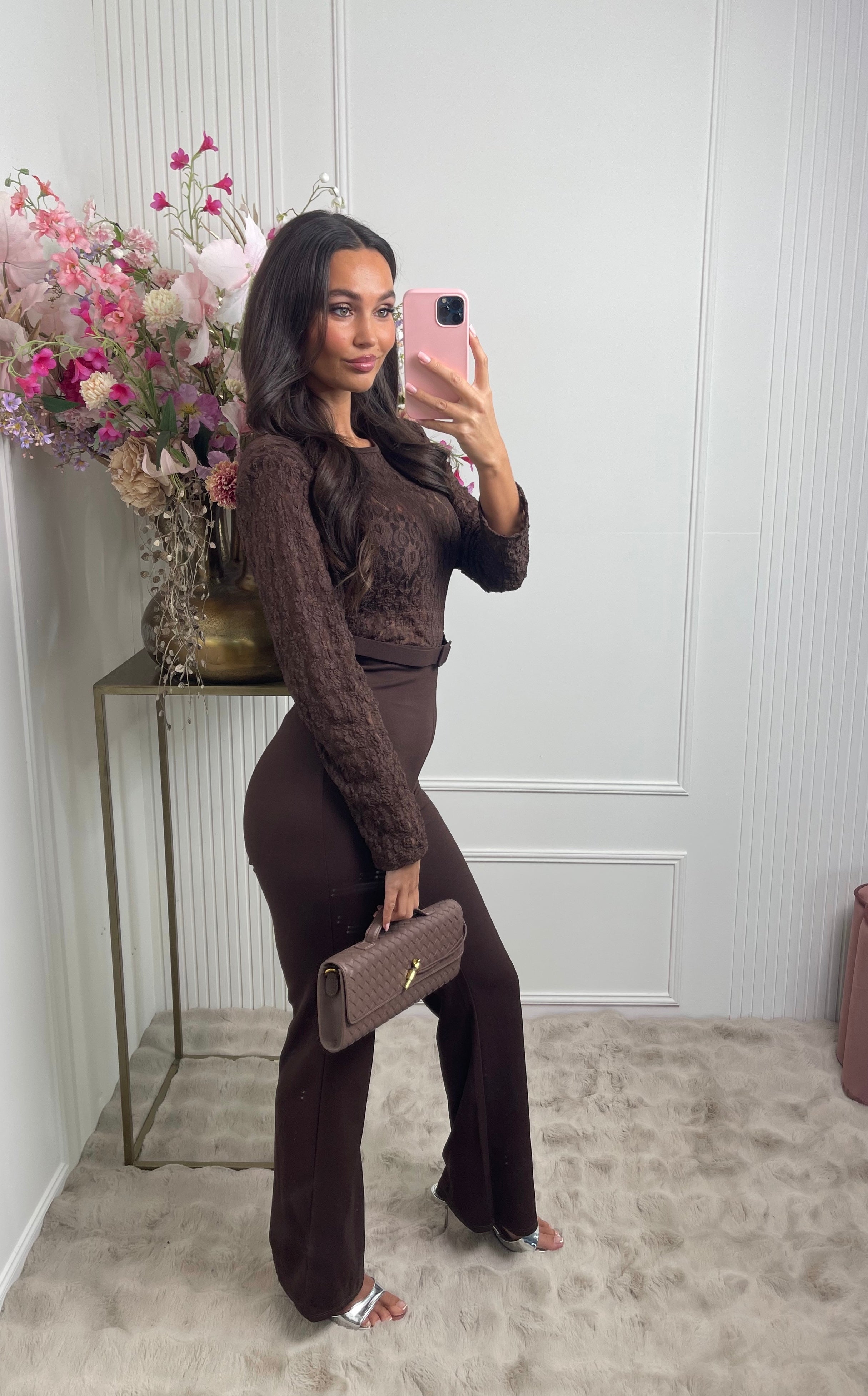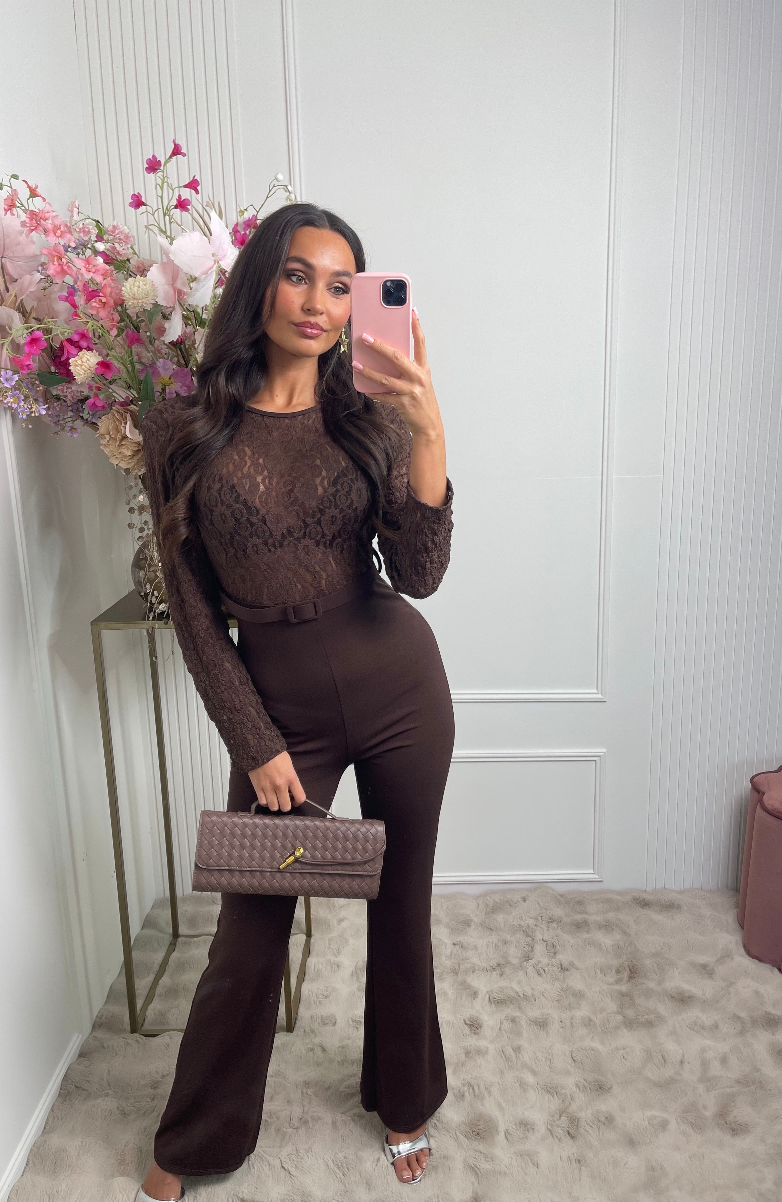 lace jumpsuit brown